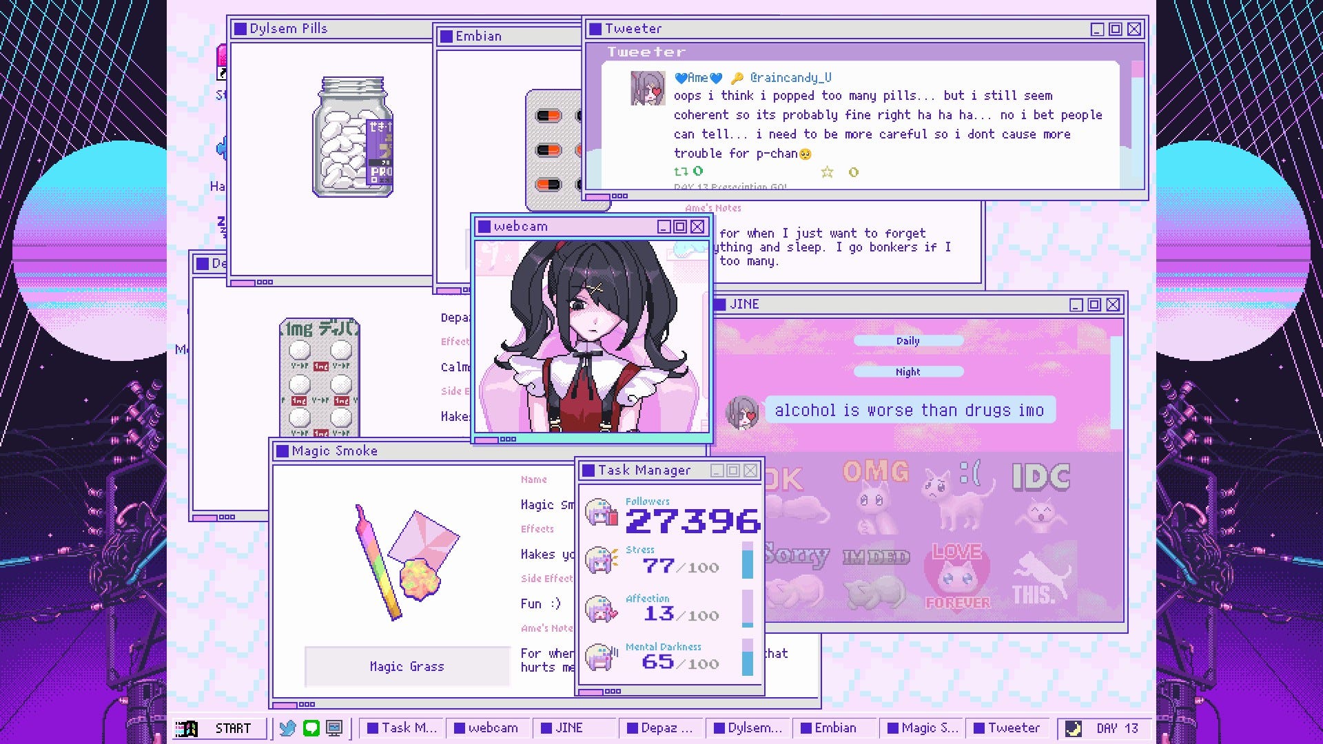 NGO deals with internet addiction, isolation, depression, anxiety, drug abuse, medication, online harassment, doxxing, internet controversy, self harm, mental health, objectification, self worth in the digital age, streamer burn out, dissociation, and various other topics. Aside from simply changing the drugs and substances to different candies, I’m unaware of how much the Switch release both keeps and removes from the PC release. Ame (the main protagonist) still has a private Twitter account that has been found to connect to a real @ on the website while a separate account poses as KAngel to release MVs, shorts, and various other media officially related to the game. Despite dealing with such heavy topics, the game still finds ways to be funny or to ensure you’re at least enjoying yourself.