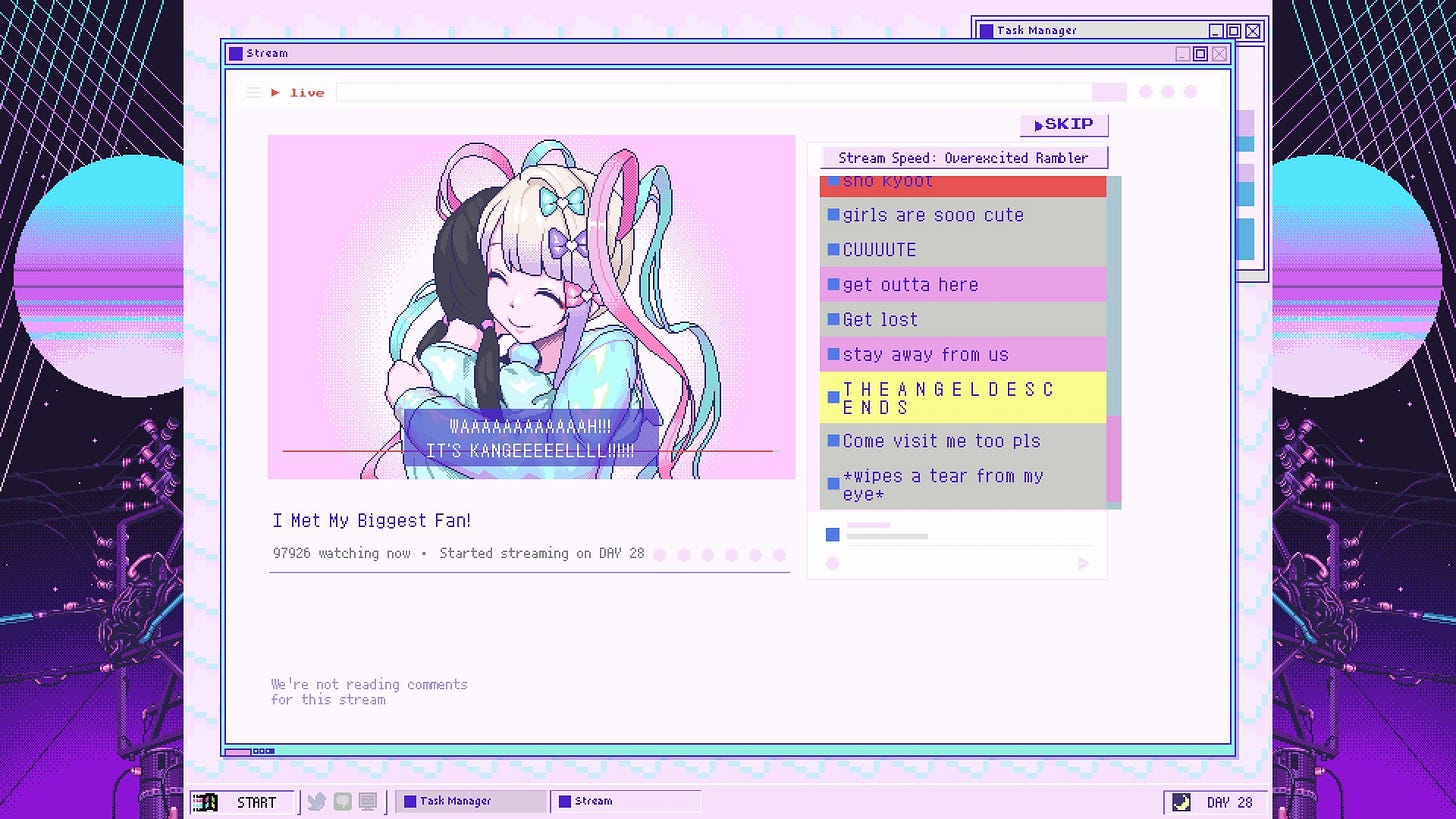 It’s surreal to be into something that had very little coverage during it’s development but then came out to become one of the biggest indie games of the past few years to also amass attention outside of its initially niche demographic. Basically, Needy Streamer blew up since its release. It blew up big after its initial scope was fairly modest given its scale.